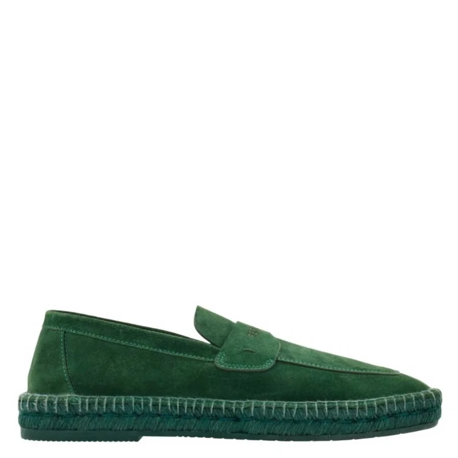 Ferragamo Men's Loafers. SKU: 025500 773006. Color: Dark Brilliant Green. Ferragamo Dark Brilliant Green Espadrilles Loafers. This Ferragamo slip-on is crafted from luxuriously soft suede. It features a squared toe, a custom saddle across the instep, and tonal stitching. The rope-wrapped sole with visible stitching adds artisanal charm, while the slim rubber sole provides durability and stability. Material: Suede. Made in Italy. Please visit the brand website for sizing information. INFORMATION Brand: Ferragamo Model: 025500 773006 Gender: Mens DETAILS Category: Loafers Color: Dark Brilliant Green Shoe Vamp Style: Slip-on Upper Material: Suede Sole Material: Rubber ADDITIONAL INFO Jomashop Sku: -025500773006N Department: Shoes