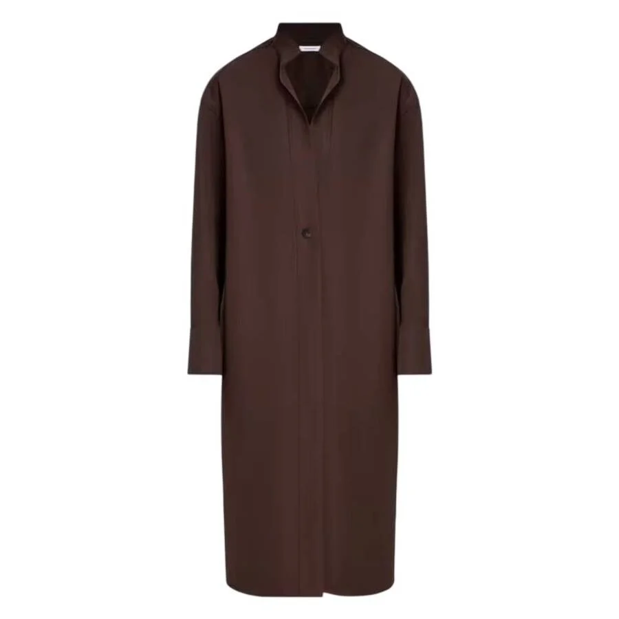Ferragamo Dark Brown Minimalist Long Overcoat