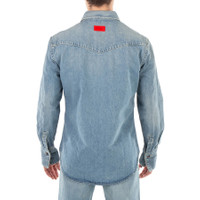 Ferragamo Men's Tops. Fashion category: Shirts & Blouses. SKU: 143172 764338. Color: Blue. Ferragamo Denim Long Sleeve Shirt. This shirt features long sleeves, a collar, round hem, a hidden placket, and a single visible button below the collar. The washed denim is accentuated by a welt chest pocket with a small button. composition: 100% cotton. Made in Italy. GENERAL Color: Blue INFORMATION Brand: Ferragamo Gender: Mens Model: 143172 764338 DETAILS Category: Tops Apparel Type: Shirts & Blouses Material: Cotton ADDITIONAL INFO Jomashop Sku: -143172764338N Department: Clothing