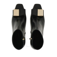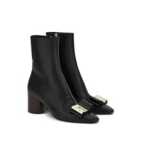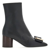 Ferragamo Ladies Boots. SKU: 01G004 763184. Color: Black. Ferragamo Double Bow Leather Ankle Boots. These ankle boots feature bow detailing, a pointed toe, side zip fastening, a branded footbed, and a 60mm mid-block heel, with an ankle-length design. Made in Italy. Please visit the brand website for sizing information. INFORMATION Brand: Ferragamo Model: 01G004 763184 Gender: Womens DETAILS Category: Boots Shoe Style: Ankle boots Shoe Style: Ankle boots Color: Black Shoe Vamp Style: Slip-on Sole Material: Leather Heel Size: 6 cm ADDITIONAL INFO Jomashop Sku: -01G004763184 Department: Shoes