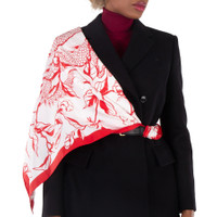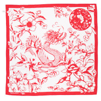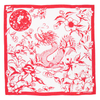 Ferragamo Ladies Scarves. Fashion category: Scarves. SKU: 310166 771969. . Material: Silk. Color: Red. Ferragamo Dragon Print Silk Scarf. This scarf, features a symbolic print with light strokes. It includes images of a dragon, a camellias, the lotus, and the moon, The scarf has a solid-color frame with the signature logo and a hand-sewn trim. It measures 35.4" x 35.4". 100% Silk. Made in Italy. GENERAL Color: Red INFORMATION Brand: Ferragamo Gender: Womens Model: 310166 771969 DETAILS Category: Scarves Apparel Type: Scarves Material: Silk ADDITIONAL INFO UPC Code: 8056283582599 Jomashop Sku: Z-W3AG5 Department: Fashion Accessories