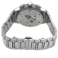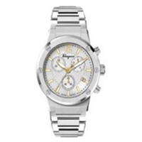 Silver-tone stainless steel case and bracelet. Fixed silver-tone stainless steel bezel. White silver dial with gold-tone hands and index hour markers. Arabic numeral appears at the 12 o'clock positions. Minute markers around the outer rim. Dial Type: Analog. Luminescent hands and markers. Date display at the 4 o'clock position. Chronograph - three sub-dials displaying: 60 second, 30 minute and 12 hour. Quartz movement. Scratch resistant sapphire crystal. Pull / push crown. Solid case back. Round case shape, case size: 42 mm. Deployment clasp. Water resistant at 50 meters / 165 feet. Functions: chronograph, date, hour, minute, second. F-80 Series. Sport watch style. Watch label: Swiss Made. Ferragamo F-80 Chronograph Quartz Men's Watch SFJE00324. GENERAL Box Type: Original Box CASE Case Size: 42 Case Material: Stainless Steel Case Shape: Round Case Back: Solid BAND Band Material: Stainless Steel Band Type: Bracelet Band Color: Silver-tone Clasp: Deployment DIAL Dial Color: White Silver Type: Analog Crystal: Scratch Resistant Sapphire Hands: Gold-tone Dial Markers: Index Second Markers: Arabic Numeral appears at the 12 o'clock positions. Minute Markers around the outer rim Sub Dials: Three - 60 Second, 30 Minute and 12 Hour Luminiscence: Hands and Markers Bezel: Fixed Bezel Color: Silver-tone Bezel Material: Stainless Steel Crown: Pull / Push INFORMATION Brand: Ferragamo Series: F-80 Collection Name: F-80 Gender: Mens Model: SFJE00324 Watch Label: Swiss Made Movement: Quartz FEATURES Water Resistance: 50 meters / 165 feet Calendar: Date display at the 4 o'clock position Functions: Chronograph, Date, Hour, Minute, Second Watch Features: Analog, Gold, Stainless Steel, Chronograph ADDITIONAL INFO Watch Style: Sport Warranty: 2 Year Jomashop Warranty UPC Code: 7630615167329 Jomashop Sku: FR-SFJE00324 Department: Watches