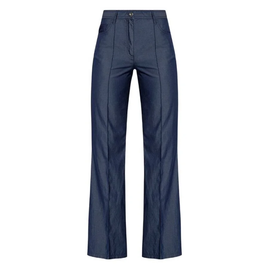 Ferragamo Ladies Bottoms. Fashion category: Pants & Leggings. SKU: 13A846 759083. Color: Blue. Ferragamo Front Pleated Flared Trousers. These cotton trousers fall into a clean flared silhouette and feature a zip fly with button closure, exposed stitching, and five-pocket styling. A front pleat adds structure and a refined touch. 100% Cotton. Made in Italy. GENERAL Color: Blue INFORMATION Brand: Ferragamo Gender: Womens Model: 13A846 759083 DETAILS Category: Bottoms Apparel Type: Pants & Leggings Material: Cotton ADDITIONAL INFO Jomashop Sku: -13A846759083 Department: Clothing
