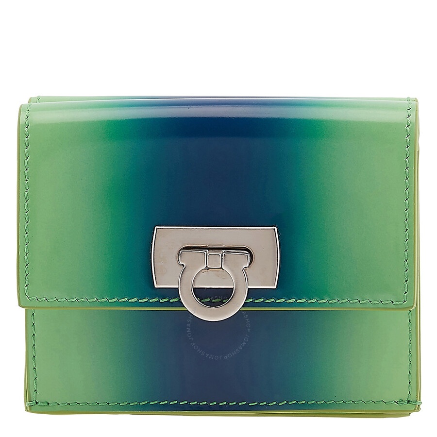 Salvatore Ferragamo Ladies Wallets. SKU: 220434 763141. Barcode: 8056283175579. Color: Green. Size: 10 x 9 x 2 cm. Ferragamo Gancini Clasp Wanda Compact Wallet. The Gancini wallet features a silver-tone hardware, a snap clousre, card slots, bill pockets. 100% Leather. Made in Italy. GENERAL Size Info: 10 x 9 x 2 cm Color: Green INFORMATION Brand: Salvatore Ferragamo Gender: Womens Model: 220434 763141 ADDITIONAL INFO UPC Code: 8056283175579 Jomashop Sku: Z-WDYUV Department: Bags Category: Wallets