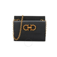 Ferragamo Ladies Wallets. SKU: 220413758545. Barcode: 8057553986864. Color: Black. Size: 4.5"W x 3.75"H x 1.25"D. Ferragamo Gancini Credit Card Holder. Made from leather, this card holder features a snap-button closure, gold-tone hardware, two card slots, and is updated with a bold gold-tone chain. Removable goldtone strap, 20" drop. Made in Italy. GENERAL Size Info: 4.5"W x 3.75"H x 1.25"D Color: Black INFORMATION Brand: Ferragamo Gender: Womens Model: 220413758545 DETAILS Material: Leather Closure: Flap ADDITIONAL INFO UPC Code: 8057553986864 Jomashop Sku: Z-M8BY9 Department: Bags Category: Wallets