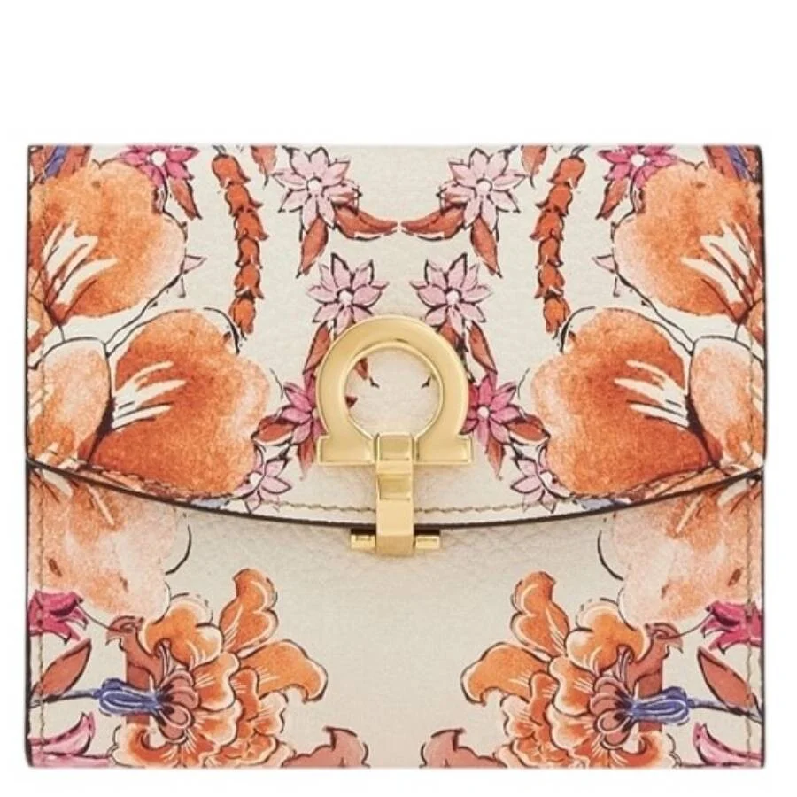 Ferragamo Ladies Wallets. SKU: 220393 759918. Color: White. Ferragamo Gancini Foulard Print Wallet. This compact wallet, crafted from hammered calfskin features a heritage print inspired by the iconic foulard motif for a luxurious finish. Thoughtfully designed for functionality, it includes an interior bill compartment, flat card slots, and a small document holder with a transparent window. The exterior coin pocket, secured with a button, is accented with the signature golden Gancini. Material: Hammered Calfskin. Made in Italy. GENERAL Color: White INFORMATION Brand: Ferragamo Gender: Womens Model: 220393 759918 DETAILS Material: Calfskin Occasion: Casual Closure: Snap DIMENSIONS Size: Mini ADDITIONAL INFO UPC Code: 8058572991808 Jomashop Sku: Z-WBMXN Department: Bags Category: Wallets