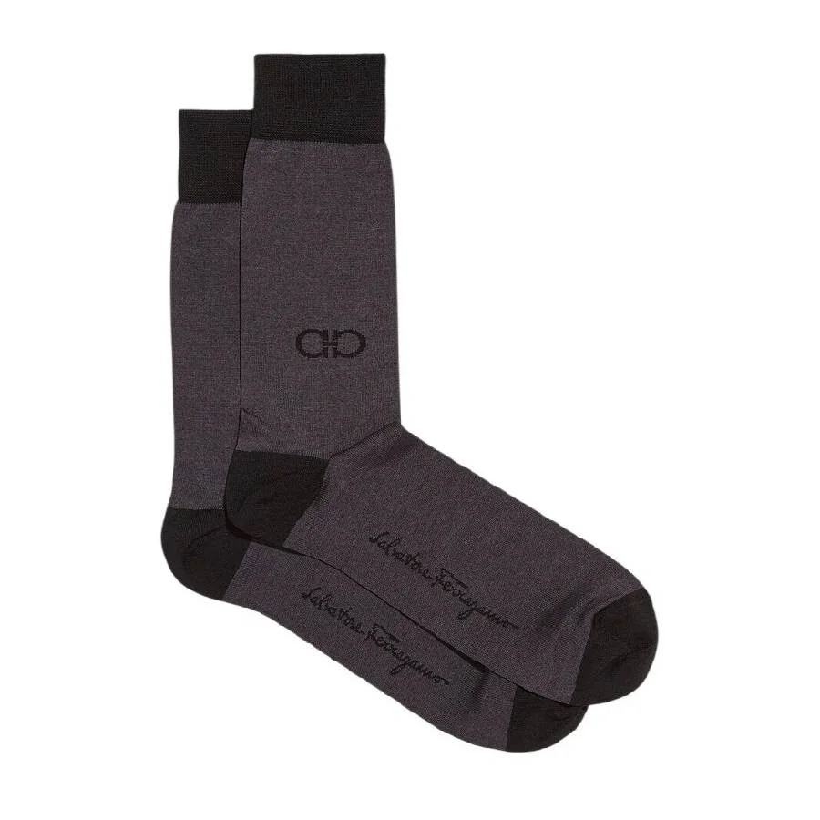 Ferragamo Men's Apparel Accessories. Fashion category: Socks. SKU: 567599 719909. Color: Light Grey. Ferragamo Gancini Jacquard Socks. These socks feature pure cotton jacquard woven with a textured Gancini pattern in harmonious matching tones, complemented by a solid-colored heel and toe, and a signature embossed on the bottom, seamlessly blending comfort with refined detail. 80% Cotton, 18% Polyamide, 2% Elastane. Made in Italy. GENERAL Clothing Size: Men's Apparel Size: OS Ring Style: Fashion Size Info: One Size Material: Cotton, Polyamide Gender: Mens Color: Light Grey Apparel Type: Socks INFORMATION Brand: Ferragamo Model: 567599 719909 ADDITIONAL INFO UPC Code: 8057453326951 Jomashop Sku: Z-HCEMD Department: Fashion Accessories Category: Fashion Accessories