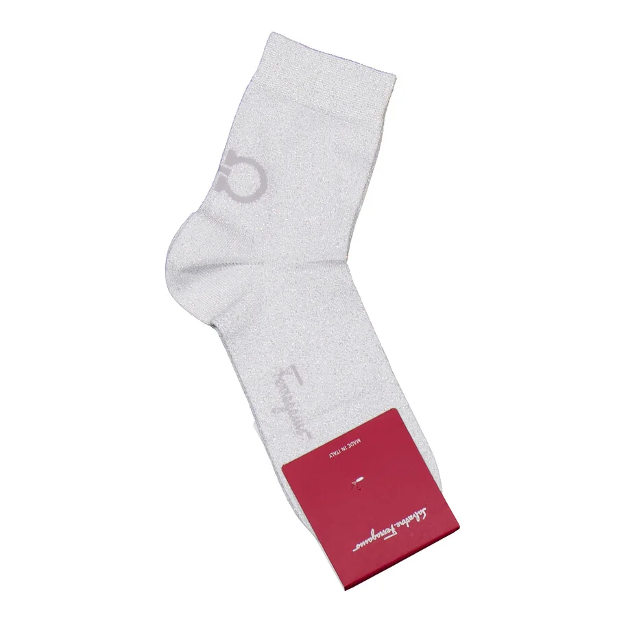 Ferragamo Ladies Apparel Accessories. Fashion category: Socks. SKU: 360686 721950. Color: Light Grey. Ferragamo Gancini Lurex Socks. Featuring lurex thread and Gancini jacquard detail on the heel. Made in Italy. GENERAL Gender: Womens Color: Light Grey Apparel Type: Socks INFORMATION Brand: Ferragamo Model: 360686 721950 ADDITIONAL INFO UPC Code: 8057453363659 Jomashop Sku: Z-7EXK4 Department: Fashion Accessories Category: Fashion Accessories