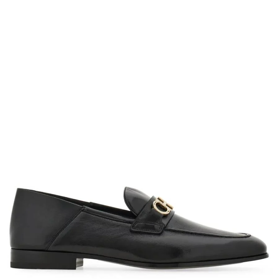 Ferragamo Men's Loafers. SKU: 029264 778971. Color: Black. Ferragamo Gancini Ornament Hybrid Loafers. Made from soft lambskin, these slip-on loafers offer a refined yet laid-back appeal. The design features a slightly squared toe, visible tray stitching, and a signature golden Gancio bit with side buckle. A foldable heel adds versatility, while the flexible leather sole and branded insole ensure all-day comfort and effortless sophistication. Made in Italy. Please visit the brand website for sizing information. INFORMATION Brand: Ferragamo Model: 029264 778971 Gender: Mens DETAILS Category: Loafers Shoe Style: Slip-On Shoe Style: Slip-On Color: Black Shoe Vamp Style: Metal Hardware Upper Material: Lambskin Sole Material: Leather ADDITIONAL INFO Jomashop Sku: -029264778971N Department: Shoes