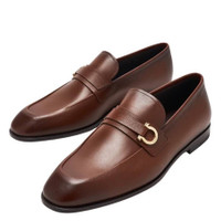 Ferragamo Men's Loafers. SKU: 021688 778786. Color: Midbrown. Ferragamo Gancini Ornament Leather Mocassin. Crafted from supple hammered calfskin, these moccasins feature a double strap across the instep adorned with a titanium-finish Gancio buckle. The rich texture of the leather is highlighted by the refined vamp construction, wrapped seamlessly by the upper. Designed with an almond-shaped toe and a leather sole with a rubber heel insert. Material: Hammered calfskin. Made in Italy. Please visit the brand website for sizing information. INFORMATION Brand: Ferragamo Model: 021688 778786 Gender: Mens DETAILS Category: Loafers Shoe Style: Slip-On Shoe Style: Slip-On Color: Midbrown Shoe Vamp Style: Metal Hardware Upper Material: Leather Sole Material: Leather ADDITIONAL INFO Jomashop Sku: -021688778786N Department: Shoes