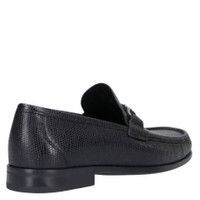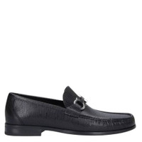Ferragamo Men's Loafers. SKU: 029457 778856. Color: Black. Ferragamo Gancini Ornament Loafers. These Ferragamo loafers feature a tapered tip and a painted Gancio bit across the instep, exuding an elegant, uptown style. Crafted from lizard-printed calfskin, they are detailed with contrasting red stitching and an open-channel leather sole for a high-end finish. Made using the exclusive “Tubular” technique, the sole is hand-sewn to ensure a supple, flexible fit and exceptional craftsmanship. Material: Calfskin Leather. Made in Italy. Please visit the brand website for sizing information. INFORMATION Brand: Ferragamo Model: 029457 778856 Gender: Mens DETAILS Category: Loafers Shoe Style: Slip-On Shoe Style: Slip-On Color: Black Shoe Vamp Style: Metal Hardware Upper Material: Calfskin Sole Material: Leather ADDITIONAL INFO Jomashop Sku: -029457778856N Department: Shoes