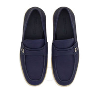 Ferragamo Loafers. SKU: 021599 768456. Color: Blue. Vamp Style: Slip-on. Lining Material: Calfskin. SoleMaterial: Rubber. Ferragamo Gancini Plaque Leather Loafers. This loafer features a Gancini plaque, a brand logo on the insole, and a flat rubber sole. Made in Italy. Please visit the brand website for sizing information. INFORMATION Brand: Ferragamo Model: 021599 768456 Gender: Mens DETAILS Category: Loafers Color: Blue Shoe Vamp Style: Slip-on Lining Material: Calfskin Sole Material: Rubber ADDITIONAL INFO Jomashop Sku: -021599768456N Department: Shoes