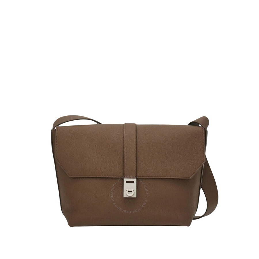 Ferragamo Men's Messenger. SKU: 241401 769762. Color: Brown. Ferragamo Gancini-Plaque Twins Messenger Bag. This messenger bag features a Gancini plaque and a logo print on the side. It has an adjustable shoulder strap, a rear zip-fastening pocket, and a folded design with a twist-lock fastening. The main compartment includes an internal slip pocket and an internal logo patch. Outer: CALFSKIN 100% ,Lining: Fabric 95%, CALFSKIN 5%. Made in Italy. GENERAL Size Info: H 9.4 IN ×L 11.0 IN× W 6.4 IN Item Variation: 241401 769762 004 Color: Brown INFORMATION Brand: Ferragamo Gender: Mens Model: 241401 769762 DETAILS Material: Calfskin Closure: Twist & Lock ADDITIONAL INFO UPC Code: 8056283503358 Jomashop Sku: Z-WY4D8 Department: Bags Category: Messenger
