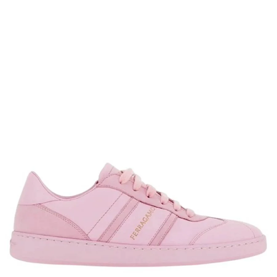 Ferragamo Ladies Sneakers. SKU: 030418 762272. Color: Lilac. Ferragamo Garda Low-Top Sneaker With Logo. These vintage-inspired sneakers feature a calfskin upper with contrasting inserts on the sides, tongue, and heel counter for a dynamic look. A discreet engraved logo on the side adds signature branding, while the lace-up fastening, box sole, and custom tread ensure style and comfort. Material: Calfskin. Made in Italy. Please visit the brand website for sizing information. INFORMATION Brand: Ferragamo Model: 030418 762272 Gender: Womens DETAILS Category: Sneakers Shoe Style: Low Top Shoe Style: Low Top Color: Lilac Shoe Vamp Style: Lace-up Sole Material: Rubber ADDITIONAL INFO Jomashop Sku: -030418762272N Department: Shoes