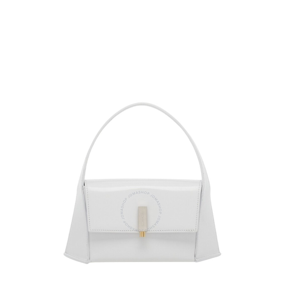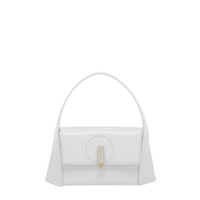 Ferragamo Ladies Mini Bag. SKU: 213971 765477. Material: Calfskin;Lambskin. Color: White. Size: W:22.5cm x H:12cm x D:7cm. Ferragamo Geometric Leather Shoulder Bag. This shoulder bag is crafted from calf leather and lambskin, featuring an engraved logo, a foldover top, a single top handle, and a detachable shoulder strap, with an internal pocket and a main compartment for storage. Outer: 100% calfskin, Lining: 100% Lambskin. Made in Italy. GENERAL Size Info: W:22.5cm x H:12cm x D:7cm Color: White INFORMATION Brand: Ferragamo Gender: Womens Model: 213971 765477 DETAILS Material: Calfskin, Lambskin ADDITIONAL INFO UPC Code: 8056283200370 Jomashop Sku: Z-2263Z Department: Bags Category: Mini Bag