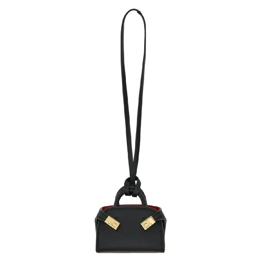 Ferragamo Ladies Keychains. SKU: 220658 775236. Color: Black. Size: L 2.7" x H 1.8" x W 1.1". Ferragamo Hug Mini Leather Charm. This charm features a replica of the Hug model, crafted in calfskin with golden-finish metal buckles, designed as a lucky charm to attach to your bag. 100% Calfskin. Made in Italy. GENERAL Ring Style: Fashion Size Info: L 2.7" x H 1.8" x W 1.1" Gender: Womens Color: Black INFORMATION Brand: Ferragamo Model: 220658 775236 ADDITIONAL INFO UPC Code: 8056283736923 Jomashop Sku: Z-H26VS Department: Accessories Category: Keychains