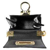 Ferragamo Ladies Handbag. SKU: 213972 762967. Barcode: 8056283172684. Color: Black. Ferragamo Ladies Black Micro Iconic Top Handle Bag. Crafted from glossy leather, this micro-sized bag features a structured silhouette and geometric brushed panels. It is complemented by a golden Gancini fastening, a rigid handle, and a detachable shoulder strap. The front flap is secured with the Gancini clasp, while the bag includes two main compartments and metal feet for added protection. Made in Italy. GENERAL Size Info: height 12.0 CM / 4.7 IN x length 12.0 CM / 4.7 IN Color: Black INFORMATION Brand: Ferragamo Gender: Womens Model: 213972 762967 DETAILS Material: Leather Closure: Flap ADDITIONAL INFO UPC Code: 8056283172684 Jomashop Sku: Z-KCACV Department: Bags Category: Handbag