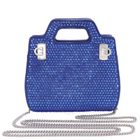 Ferragamo Ladies Handbag. SKU: 214469 762650. Barcode: 8056283169714. Color: Blue. Size: height 7.0 IN x length 7.0 IN x width 2.3 IN. Ferragamo Ladies Blue Crystal Studded Wanda Mini Bag. The Wanda bag features geometric lines and smooth calfskin panels, showcasing an understated design with an integrated handle and satin-finish Gancini buckles on the sides. It can be carried as a handbag or worn over the shoulder with the detachable strap. Made in Italy. GENERAL Size Info: height 7.0 IN x length 7.0 IN x width 2.3 IN Color: Blue INFORMATION Brand: Ferragamo Gender: Womens Model: 214469 762650 DETAILS Material: Leather ADDITIONAL INFO UPC Code: 8056283169714 Jomashop Sku: Z-L4QGJ Department: Bags Category: Handbag
