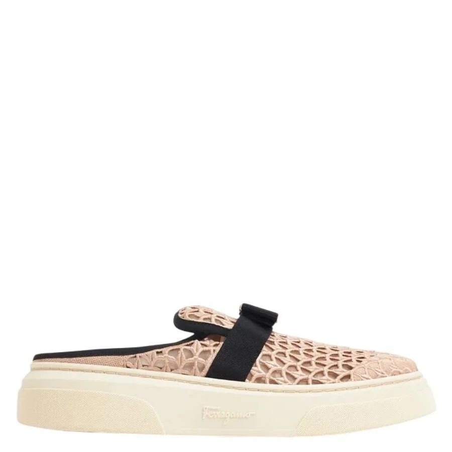 Ferragamo Ladies Sneakers. SKU: 030359 758537. Color: Bone. Ferragamo Laser-Cut Vara Bow Mule Sneaker. Ferragamo reinterprets the classic mule with a sporty edge, featuring laser-cut textile uppers and a bold strap detail for modern attitude. This slip-on style is built for easy wear, finished with a round toe, textile lining, and a sculptural synthetic platform sole that adds a contemporary lift. Made in Italy. Please visit the brand website for sizing information. INFORMATION Brand: Ferragamo Model: 030359 758537 Gender: Womens DETAILS Category: Sneakers Color: Bone Shoe Vamp Style: Slip-on Sole Material: Rubber ADDITIONAL INFO Jomashop Sku: -030359758537N Department: Shoes