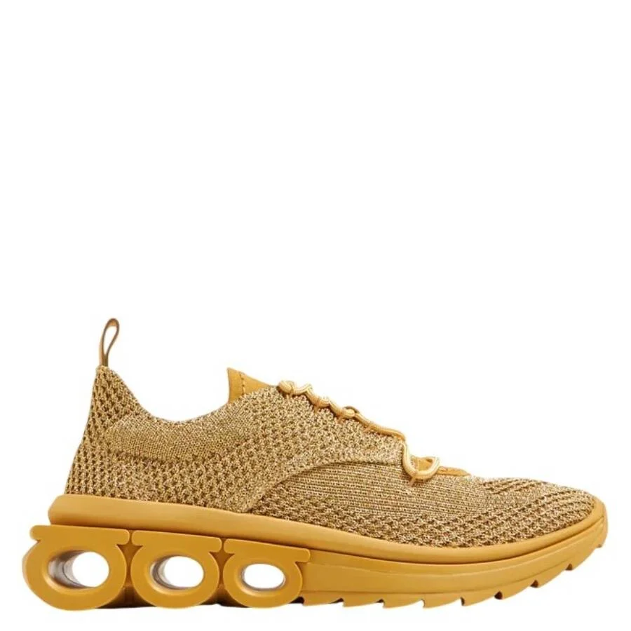 Ferragamo Ladies Sneakers. SKU: 030476 766456. Color: Light Yellow. Ferragamo Nima Knit Low-Top Sneakers. The Nima sneakers combine performance and luxury with a metallic technical knit upper, enhanced by suede and nubuck accents for added texture. Designed for a soft, second-skin feel, this sleek pair is set on a branded sole and finished with signature Gancini detailing at the sides. Made in Italy. Please visit the brand website for sizing information. INFORMATION Brand: Ferragamo Model: 030476 766456 Gender: Womens DETAILS Category: Sneakers Shoe Style: Low Top Shoe Style: Low Top Color: Light Yellow Shoe Vamp Style: Lace-up Sole Material: Rubber ADDITIONAL INFO Jomashop Sku: -030476766456N Department: Shoes
