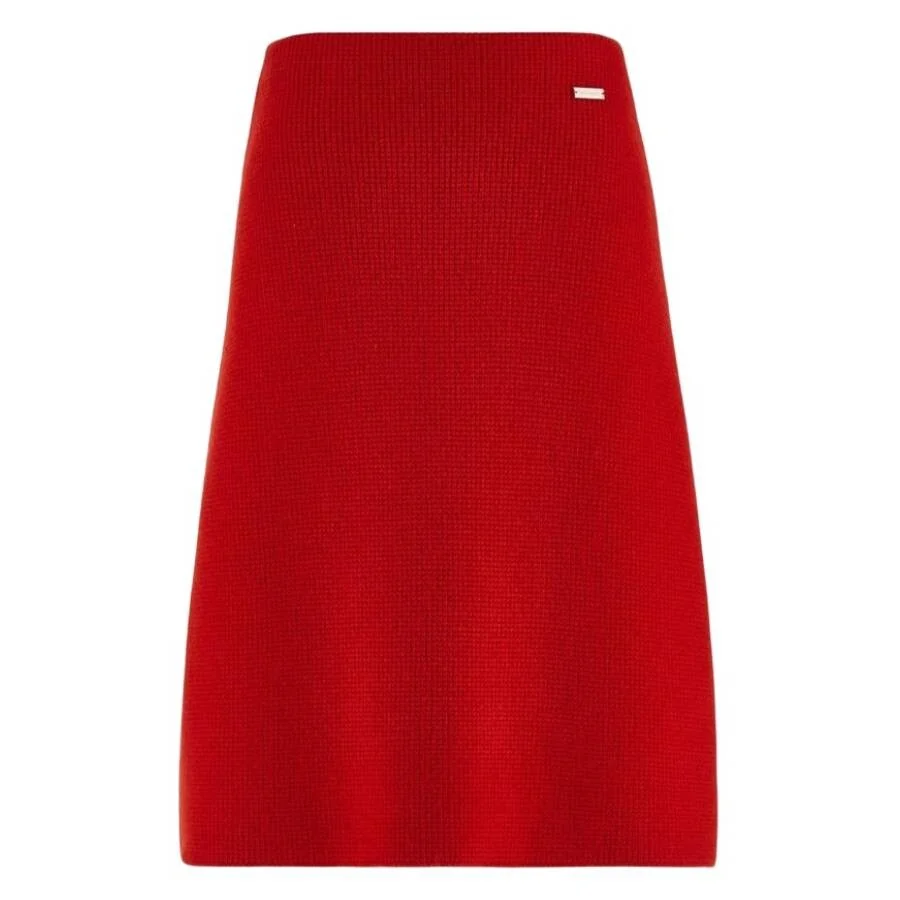 Ferragamo Ladies Bottoms. Fashion category: Skirts. SKU: 112400 767375. Color: Red. Ferragamo Red Knitted Knee-Length Skirt. Crafted from compact viscose with a touch of elastane for a comfortable, slim fit, this knee-length skirt offers a sleek, feminine silhouette. Finished with a subtle custom metal tab at the hip for a refined, minimalist detail. 45% Viscose, 30% Polyester, 22% Polyamide, 3% Elastane. Made in Italy. GENERAL Color: Red INFORMATION Brand: Ferragamo Gender: Womens Model: 112400 767375 DETAILS Category: Bottoms Apparel Type: Skirts Material: Elastane, Polyamide, Polyester, Viscose ADDITIONAL INFO Jomashop Sku: -112400767375N Department: Clothing