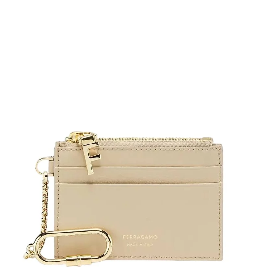 Ferragamo Ladies Card Case. SKU: 220868 779950. Color: Beige/Khaki. Size: L 3.94" x W 2.95". Ferragamo Signature Stamp Leather Card Case. This card case features a compact design with four card slots, a zippered pocket, and a coin pocket, offering both organization and functionality. A side chain with a snap hook adds a touch of versatility, allowing for easy attachment of keys, making it as practical as it is stylish. 100% Leather. Made in Italy. GENERAL Size Info: L 3.94" x W 2.95" Color: Beige/Khaki INFORMATION Brand: Ferragamo Gender: Womens Model: 220868 779950 DETAILS Material: Leather ADDITIONAL INFO UPC Code: 8031895835110 Jomashop Sku: Z-QDTGG Department: Bags Category: Card Case