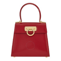 Salvatore Ferragamo Ladies Top Handle Bag. SKU: 212193 749306. Color: Red. Size: H: 7" x L: 8" x W: 3.9". Ferragamo Small Iconic Top Handle Bag - Red. Crafted in Italy, this top handle bag in brushed-off calfskin with a gold Gancini clasp, antique gold-tone hardware, two interior compartments, 1 wall zipped pocket and top handle. 100% calf leather. Made in Italy. GENERAL Size Info: H: 7" x L: 8" x W: 3.9" Color: Red INFORMATION Brand: Ferragamo Gender: Womens Model: 212193 749306 DETAILS Material: Leather Closure: Twist & Lock DIMENSIONS Size: Small ADDITIONAL INFO UPC Code: 8057553513923 Jomashop Sku: Z-7QKXZ Department: Bags Category: Top Handle Bag