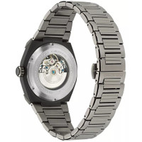 Gunmetal IP stainless steel case and bracelet. Fixed gunmetal IP stainless steel bezel. Black skeleton dial with silver-tone hands and index hour markers. Minute markers around the outer rim. Dial Type: Analog. Automatic movement. Scratch resistant sapphire crystal. Pull / push crown. Transparent see through case back. Round case shape, case size: 43 mm. Deployment with push button release clasp. Water resistant at 50 meters / 165 feet. Functions: hour, minute, second. Sport watch style. Watch label: Swiss Made. Ferragamo Supreme Skeleton Automatic Black Dial Men's Watch SFTA00224. GENERAL Box Type: Original Box CASE Case Material: Stainless Steel Case Shape: Round Case Back: Transparent See Through BAND Band Material: Stainless Steel Band Type: Bracelet Band Color: Gunmetal IP Clasp: Deployment with Push Button Release DIAL Dial Color: Black Skeleton Type: Analog Crystal: Scratch Resistant Sapphire Hands: Silver-tone Dial Markers: Index Second Markers: Minute Markers around the outer rim Bezel: Fixed Bezel Color: Gunmetal IP Bezel Material: Stainless Steel Crown: Pull / Push INFORMATION Brand: Ferragamo Gender: Mens Model: SFTA00224 Watch Label: Swiss Made Movement: Automatic FEATURES Water Resistance: 50 meters / 165 feet Functions: Hour, Minute, Second Watch Features: Stainless Steel, Analog ADDITIONAL INFO Watch Style: Sport Jomashop Sku: Z-LC7LG Department: Watches