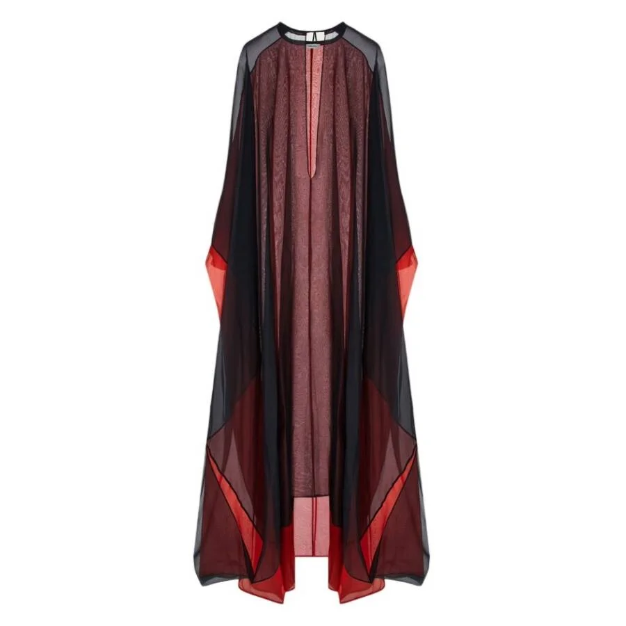 Ferragamo Ladies Dresses. SKU: 13C577 765343. Color: Black. Ferragamo Transparent Organza Tunic Dress. Floor-length dress crafted from lightweight, sheer silk organza. Designed with a tunic silhouette, it features a low-cut neckline with lace-up front ties, shirt-style sleeves, and double organza panels at the back for a dramatic cloak effect. Finished with a flowing back train for added elegance. Material: 51% Silk, 49% Polyamide. Made in Italy. GENERAL Size Info: One Size Clothing Size: Ladies Apparel Size: OS Color: Black INFORMATION Brand: Ferragamo Gender: Womens Model: 13C577 765343 DETAILS Category: Dresses Apparel Type: Cover-Ups Material: Polyamide, Silk ADDITIONAL INFO UPC Code: 8056283369657 Jomashop Sku: Z-8NMPQ Department: Clothing