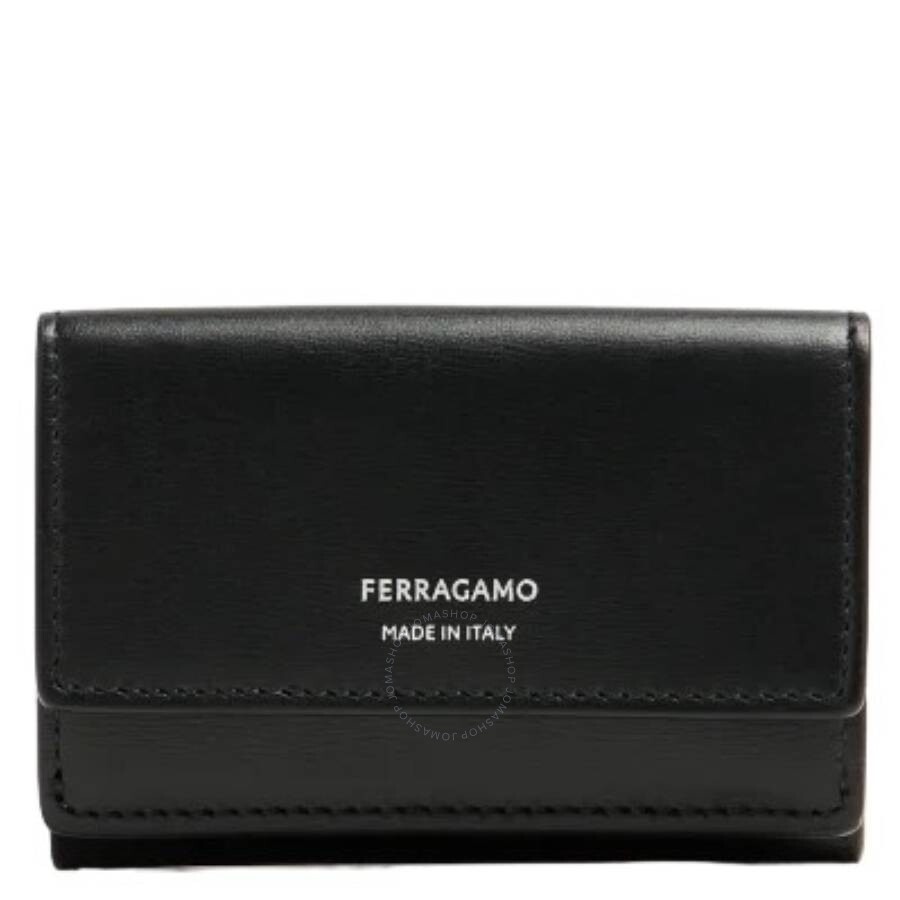 Ferragamo Men's Card Case. SKU: 661337 770115. Color: Black. Size: H 6.5 x L 9.5 cm. Ferragamo Tri-Fold Leather Card Holder. This card case, crafted from 100% palellato calfskin, features an external pocket and a spacious central compartment. The front is adorned with a logo finished in palladium tones. 100% Leather. Made in Italy GENERAL Size Info: H 6.5 x L 9.5 cm Item Variation: 661337 770115 001 Color: Black INFORMATION Brand: Ferragamo Gender: Mens Model: 661337 770115 DETAILS Material: Leather ADDITIONAL INFO UPC Code: 8056283508247 Jomashop Sku: Z-SXX8T Department: Bags Category: Card Case