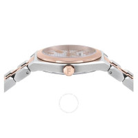 Silver-tone stainless steel case with a two-tone (silver-tone and rose gold-tone) stainless steel bracelet. Fixed rose gold-tone stainless steel bezel. Mother of pearl dial with rose gold-tone hands and index-Roman numeral hour markers. Roman numeral marker appears at the 12 o'clock position. Minute scale around the inner rim. Dial Type: Analog. Quartz movement. Scratch resistant sapphire crystal. Pull / push crown. Solid case back. Round case shape, case size: 28 mm. Band width: 14 mm. Deployment with push button release clasp. Water resistant at 30 meters / 100 feet. Functions: hour, minute, second. Vega New Series. Dress watch style. Watch label: Swiss Made. Ferragamo Vega New Quartz Mother of Pearl Dial Ladies Watch SFKJ01124. GENERAL Box Type: Original Box CASE Case Material: Stainless Steel Case Shape: Round Case Back: Solid BAND Band Material: Stainless Steel Band Type: Bracelet Band Color: Two-tone (Silver-tone and Rose Gold-tone) Band Width: 14 mm Clasp: Deployment with Push Button Release DIAL Dial Color: Mother of Pearl Type: Analog Crystal: Scratch Resistant Sapphire Hands: Rose Gold-tone Dial Markers: Index-Roman Numeral Second Markers: Roman Numeral marker appears at the 12 o'clock position. Minute Scale around the inner rim Bezel: Fixed Bezel Color: Rose Gold-tone Bezel Material: Stainless Steel Crown: Pull / Push INFORMATION Brand: Ferragamo Series: Vega New Collection Name: Vega New Gender: Womens Model: SFKJ01124 Watch Label: Swiss Made Movement: Quartz FEATURES Water Resistance: 30 meters / 100 feet Functions: Hour, Minute, Second Watch Features: Stainless Steel, Gold, Analog ADDITIONAL INFO Watch Style: Dress Jomashop Sku: Z-F4WJD Department: Watches