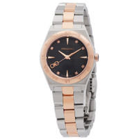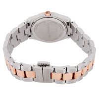 Silver-tone stainless steel case with a two-tone (silver-tone and rose gold-tone) stainless steel bracelet. Fixed rose gold-tone stainless steel bezel. Brown sunray guilloche dial with rose gold-tone hands and diamond-index hour markers. Gancini logo at the 8 o'clock position. Minute markers around the outer rim. Dial Type: Analog. Quartz movement. Pull / push crown. Solid case back. Round case shape, case size: 28 mm. Water resistant at 50 meters / 165 feet. Functions: hour, minute, second. Vega Upper East Series. Dress watch style. Watch label: Swiss Made. Ferragamo Vega Upper East Quartz Diamond Ladies Watch SFKY00423. GENERAL Box Type: Original Box CASE Case Material: Stainless Steel Case Shape: Round Case Back: Solid BAND Band Material: Stainless Steel Band Type: Bracelet Band Color: Two-tone (Silver-tone and Rose Gold-tone) DIAL Dial Color: Brown Sunray Guilloche Type: Analog Hands: Rose Gold-tone Dial Markers: Diamond-Index Second Markers: Gancini logo at the 8 o'clock position. Minute Markers around the outer rim Bezel: Fixed Bezel Color: Rose Gold-tone Bezel Material: Stainless Steel Crown: Pull / Push INFORMATION Brand: Ferragamo Series: Vega Upper East Collection Name: Vega Upper East Gender: Womens Model: SFKY00423 Watch Label: Swiss Made Movement: Quartz FEATURES Water Resistance: 50 meters / 165 feet Functions: Hour, Minute, Second Watch Features: Analog, Gold, Stainless Steel, Diamond ADDITIONAL INFO Watch Style: Dress Jomashop Sku: Z-7Q6UY Department: Watches