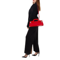 Ferragamo Ladies Top Handle Bag. SKU: 213484 760547. Color: Red. Size: H: 7.8" x L: 14.5" x W: 3.5". Ferragamo Wanda East-West Top Handle Bag. This avant-garde geometric handbag, inspired by the iconic Wanda style, is crafted from brushed calfskin. It features a lined interior with two flat pockets and can be carried as a handbag or shoulder bag with the detachable strap. The side fastening has a satin-finish steel Gancini accent. 100% Calfskin. Made in Italy. GENERAL Size Info: H: 7.8" x L: 14.5" x W: 3.5" Item Variation: 213484 760547 003 Color: Red Upper Material: Calfskin INFORMATION Brand: Ferragamo Gender: Womens Model: 213484 760547 DETAILS Material: Calfskin ADDITIONAL INFO UPC Code: 8056283103275 Jomashop Sku: Z-755X5 Department: Bags Category: Top Handle Bag