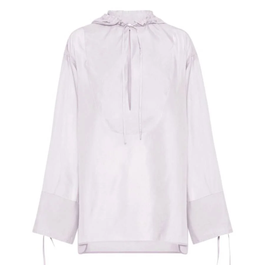 Ferragamo Ladies Tops. Fashion category: Shirts & Blouses. SKU: 13C498 764282. Color: White. Ferragamo White Hooded Tunic Oversized Top. Hooded tunic crafted from a technical silk blend, designed with an oversized fit, drop shoulders, and a relaxed bust. Features a deep collar slit with laces that mirror the drawstring details at the wrists. Material: 73% Cotton, 27% Silk. Made in Italy. GENERAL Color: White INFORMATION Brand: Ferragamo Gender: Womens Model: 13C498 764282 DETAILS Category: Tops Apparel Type: Shirts & Blouses Material: Cotton, Silk ADDITIONAL INFO Jomashop Sku: -13C498764282 Department: Clothing
