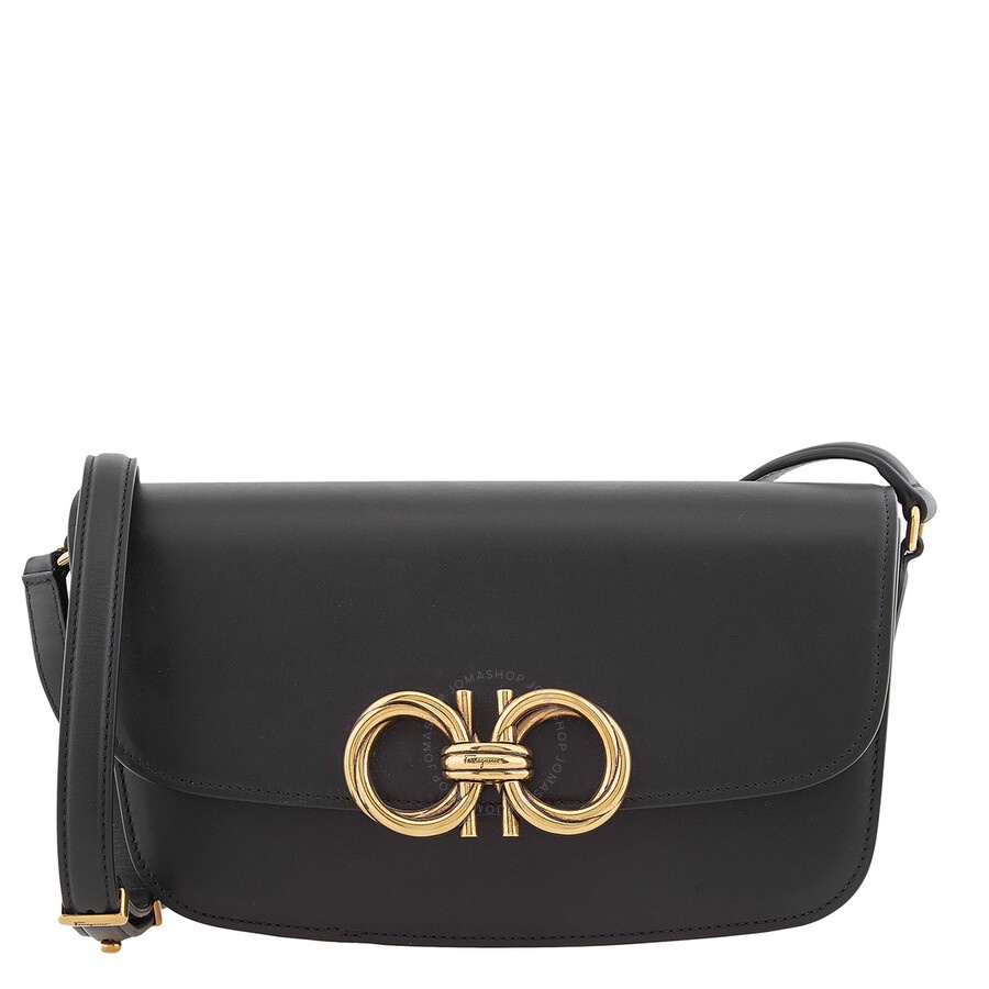 Salvatore Ferragamo Ladies Crossbody. SKU: 212916 759141. Barcode: 8057553993190. Color: Black. Size: H: 5.1" x L: 10.6" x W: 2.7". Salvatore Ferragamo Trapezio S Calfskin Crossbody Bag. Crafted in Italy, the Trapezio bag in soft calfskin features a antiqued-finish interwoven Gancini fastening, an adjustable strap for shoulder or crossbody wear, a semi-rigid structure with lined double compartment on the interior and a flat back pocket. Made in Italy. GENERAL Size Info: H: 5.1" x L: 10.6" x W: 2.7" Color: Black INFORMATION Brand: Ferragamo Gender: Womens Model: 212916 759141 DETAILS Material: Calfskin Closure: Push Lock DIMENSIONS Size: Medium ADDITIONAL INFO UPC Code: 8057553993190 Jomashop Sku: Z-JBRLP Department: Bags Category: Crossbody