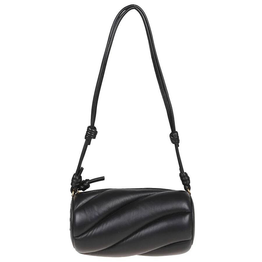 Fiorucci Ladies Shoulder Bag. SKU: U01FPABA001LE04 BK01. Color: Black. Fiorucci Black Leather Mella Bag. Black smooth-grain lambskin twisted cylinder body, knot details, embroidered logo on the side, top zip closure, slim shoulder straps, main compartment with embossed logo inside, interior slip pocket, gold-tone hardware, cotton lining. This piece comes with a protective dust bag. GENERAL Color: Black INFORMATION Brand: Fiorucci Gender: Womens Model: U01FPABA001LE04 BK01 ADDITIONAL INFO UPC Code: 5059524098296 Jomashop Sku: Z-HG5DU Department: Bags Category: Shoulder Bag