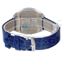 18kt white gold case with a blue genuine leather strap. Fixed bezel with diamond set 18kt white gold. White dial with black hands and Roman numeral hour markers. Dial Type: Analog. Quartz movement. Scratch resistant sapphire crystal. Solid case back. Tonneau case shape, case size: 35 mm. Buckle clasp. Functions: hour, minute. Infinity Series. Luxury watch style. Watch label: Swiss Made. Franck Muller Infinity Quartz Diamond White Dial Ladies Watch 3535 QZ COL DRM R D3. GENERAL Box Type: Original Box CASE Case Material: 18kt White Gold Case Shape: Tonneau Case Back: Solid BAND Band Material: Genuine Leather Band Type: Strap Band Color: Blue Clasp: Buckle DIAL Dial Color: White Type: Analog Crystal: Scratch Resistant Sapphire Hands: Black Dial Markers: Roman Numeral Bezel: Fixed Bezel Material: Diamond Set 18kt White Gold INFORMATION Brand: Franck Muller Series: Infinity Collection Name: Infinity Gender: Womens Model: 3535 QZ COL DRM R D3 Watch Label: Swiss Made Movement: Quartz FEATURES Functions: Hour, Minute Watch Features: Analog, Gold, Leather, Diamond ADDITIONAL INFO Watch Style: Luxury Warranty: 2 Year Jomashop Warranty Jomashop Sku: FM3535QZCOLDRMRD3 Department: Watches