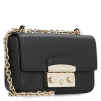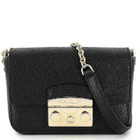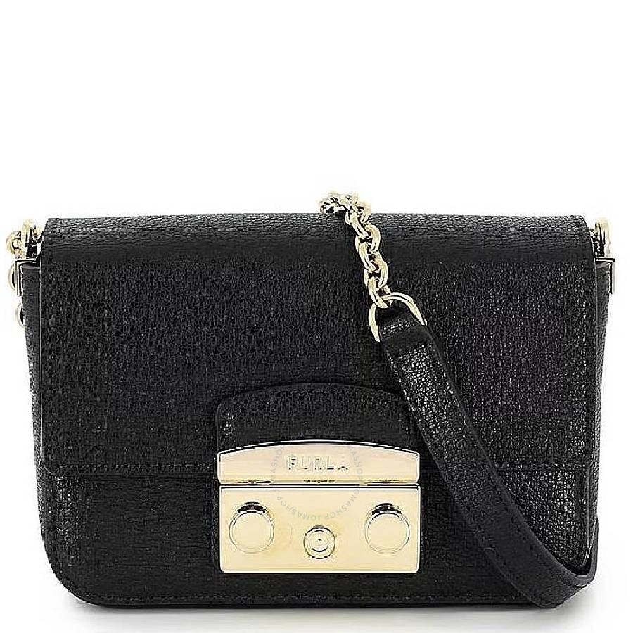 Furla Ladies Crossbody. SKU: WB00828AX0733O60001007. Color: Black. Size: W: 16cm x H: 11cm x D: 6.5cm. Furla Mini Flat Crossbody Leather Bag. This bag features a flap with a flip-lock closure, one internal flat pocket, and a sliding chain strap with a leather shoulder pad. It is accented with gold-tone metal hardware and has a fabric lining. 100% Polyester, 100% Calfskin. GENERAL Size Info: W: 16cm x H: 11cm x D: 6.5cm Color: Black INFORMATION Brand: Furla Gender: Womens Model: WB00828AX0733O60001007 DETAILS Material: Calfskin, Polyester ADDITIONAL INFO UPC Code: 8050597258188 Jomashop Sku: Z-7G838 Department: Bags Category: Crossbody