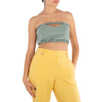Ganni Ladies Green Bay Suiting Strapless Crop Top