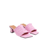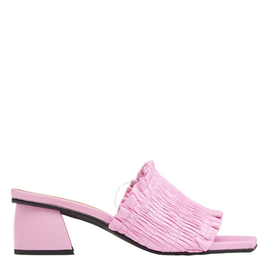 Ganni Ladies Sandals. SKU: S2111-428. Color: Light Lilac. Ganni Ladies Light Lilac Kitten Heel Smock Mules. Characterized by sharp lines, the square-toe pair features a slip-on style, smocked straps and comfortable kitten heels. Made in Spain. Please visit the brand website for sizing information. INFORMATION Brand: Ganni Model: S2111-428 Gender: Womens DETAILS Category: Sandals Shoe Style: Mules Shoe Style: Mules Color: Light Lilac Shoe Vamp Style: Slip-on Sole Material: Leather ADDITIONAL INFO Jomashop Sku: -S2111428 Department: Shoes
