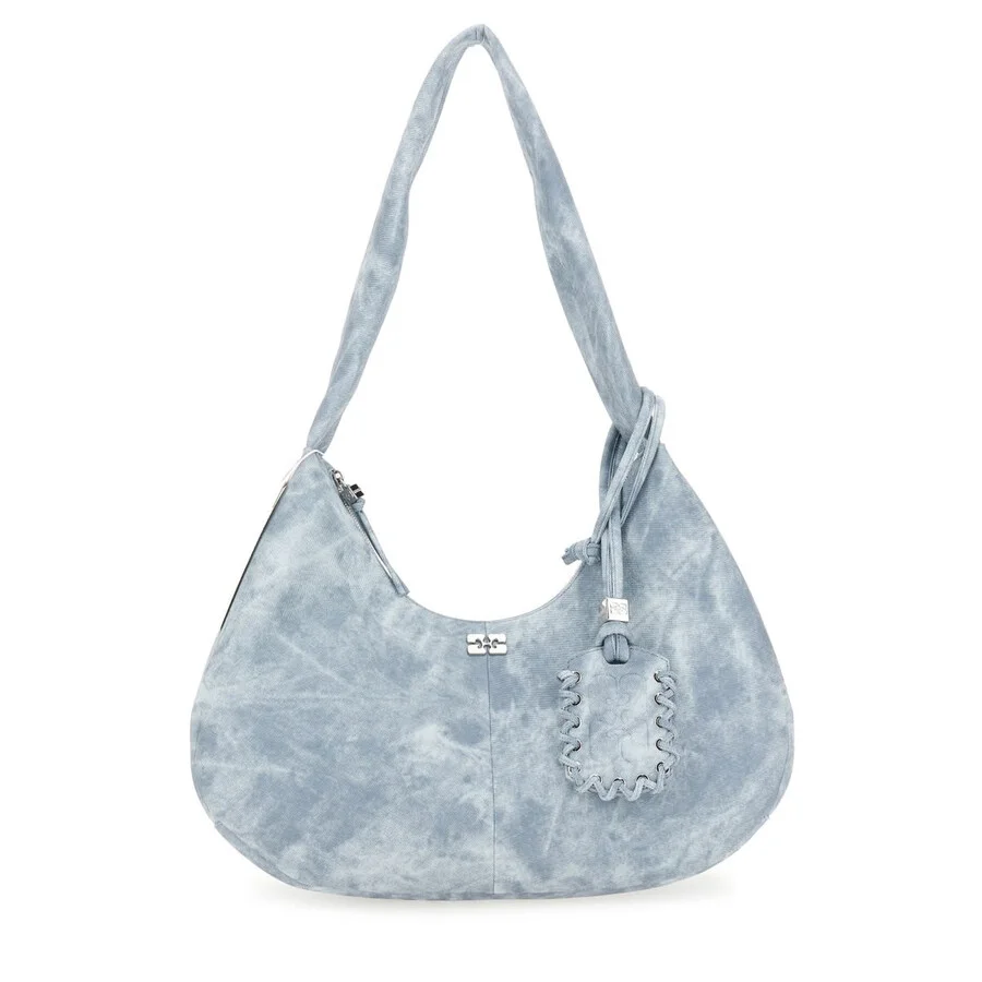 58% Recycled Polyester 42% Polyurethane - Made In China 58% Recycled Polyester 42% Polyurethane GENERAL Color: Baby Blue INFORMATION Brand: Ganni Gender: Womens Model: A6866_371 ADDITIONAL INFO Jomashop Sku: Z-E9UY5 Department: Bags Category: Hobo