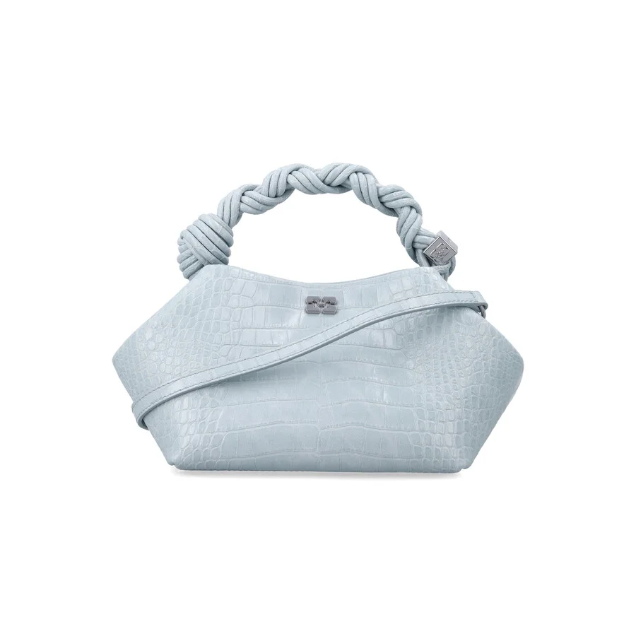Ganni Ladies Shoulder Bag. SKU: B21000311142500C. Color: Delicate Blue. Size: Height: 14,5 cm Width: 28 cm Depth: 17 cm. Ganni Small Crocco Embossed Bou Bag. The Small Bou Bag By Ganni Features An Elegant Hexagonal Silhouette With A Croc-embossed Finish. Its Braided Top Handle With Knotted Detailing Offers Sculptural Appeal, While The Adjustable And Removable Strap Enhances Everyday Versatility. Inside, Two Compartments And A Magnetic Closure Provide Structure And Functionality. Finished With The Butterfly Logo, An Embossed Logo On The Back, And A Silver-tone Logo Dice. Hexagonal Shape Croc-embossed Texture Braided Top Handle With Knot Adjustable And Removable Shoulder Strap Internal Magnetic Closure Silver-tone Metallic Dice With Ganni Logo Butterfly Logo At Front Embossed Ganni Logo At Back Two Interior Compartments Flat Card Pocket Height: 14,5 Cm Width: 28 Cm Depth: 17 Cm. Composition: 52% recycled leather, 27% polyester, 21% polyurethane Lining, 100% cotton GENERAL Size Info: Height: 14,5 cm Width: 28 cm Depth: 17 cm Color: Delicate Blue INFORMATION Brand: Ganni Gender: Womens Model: B21000311142500C ADDITIONAL INFO Jomashop Sku: Z-WYZQM Department: Bags Category: Shoulder Bag