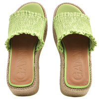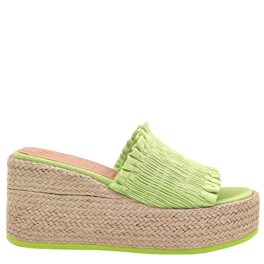 Ganni Ladies Sandals. SKU: S2098-747. Color: Tender Shoots. Ganni Tender Shoots Smock Espadrille Wedge Sandals. This slip-on style shoe, made in Spain, features a recycled smocked taffeta upper, a jute-wrapped rubber sole, a metal-free leather lining, an almond toe, and a Ganni logo on the insole. Please visit the brand website for sizing information. INFORMATION Brand: Ganni Model: S2098-747 Gender: Womens DETAILS Category: Sandals Shoe Style: Wedges Shoe Style: Wedges Color: Tender Shoots Shoe Vamp Style: Slip-on ADDITIONAL INFO Jomashop Sku: -S2098747 Department: Shoes
