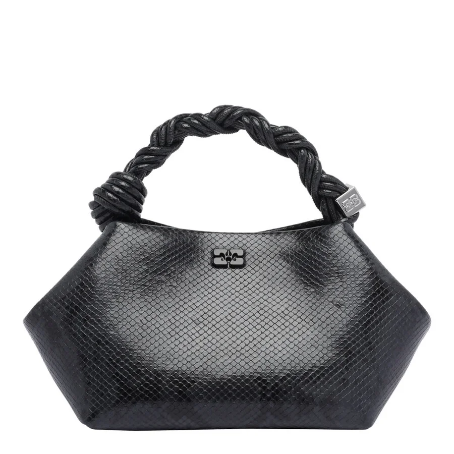 Small Ganni Bou Snake Handbag From Ganni GENERAL Color: Black Oyster INFORMATION Brand: Ganni Gender: Womens Model: A7261 ADDITIONAL INFO Jomashop Sku: Z-YMBLF Department: Bags Category: Tote Bags