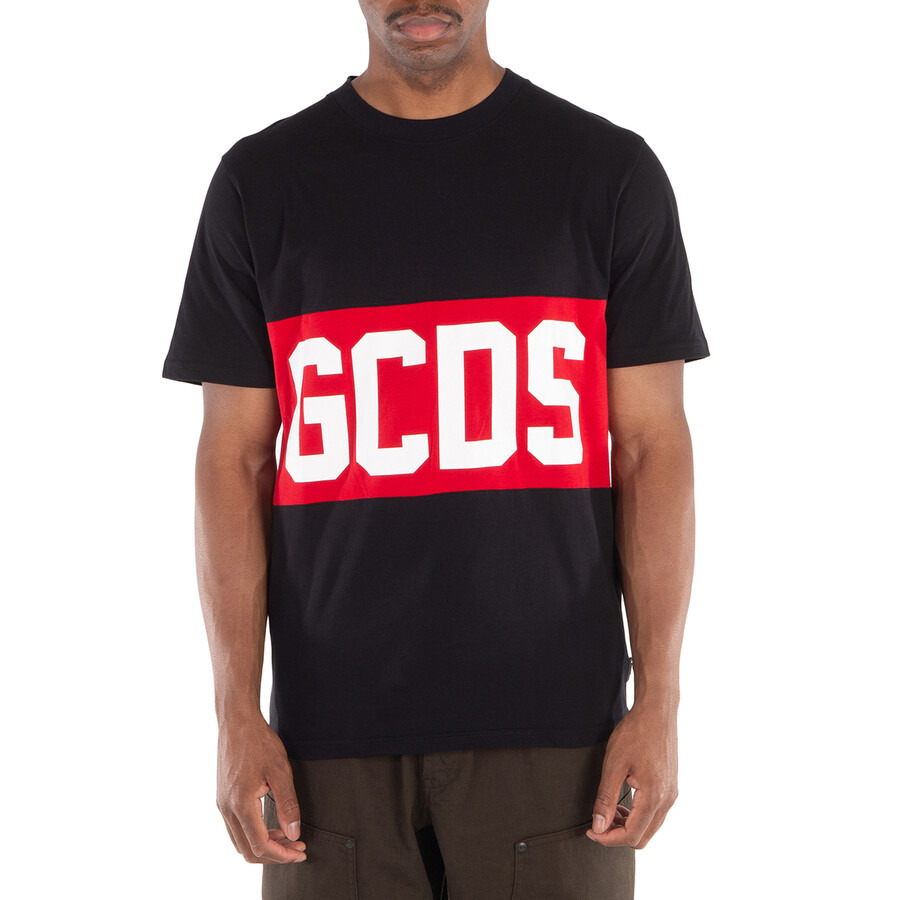 GCDS Men's Tops. Fashion category: T-Shirts & Henleys. SKU: CC94M130146. Color: Black. GCDS Black Logo Band Cotton T-Shirt. A classic, regular-fit heavy cotton T-shirt featuring a contrasting silk-screen printed logo band inlaid on the front and back, polished nickel logo flag label, short sleeves, and a straight hem. 100% Cotton (Heavy Cotton Old Style). Made in Italy. GENERAL Color: Black INFORMATION Brand: Gcds Gender: Mens Model: CC94M130146 DETAILS Category: Tops Apparel Type: T-Shirts & Henleys ADDITIONAL INFO Jomashop Sku: -CC94M130146 Department: Clothing
