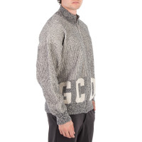 GCDS Grey Ribbed Logo Full Zip Cardigan