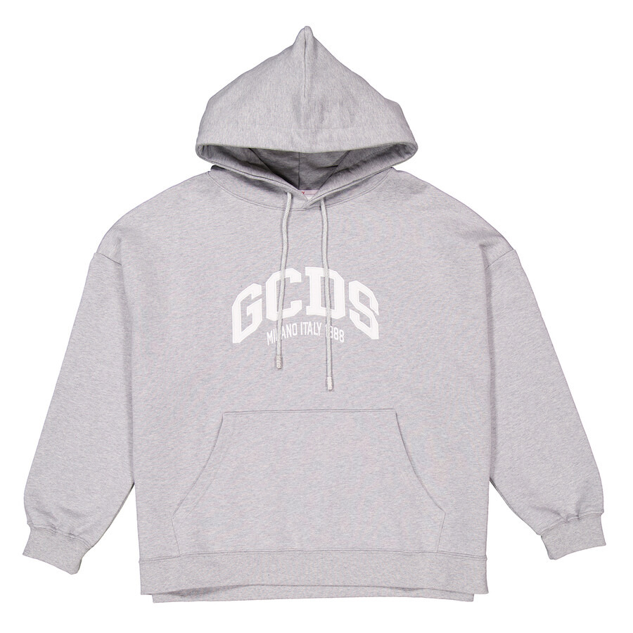 GCDS Men's Tops. Fashion category: Hoodies & Sweatshirts. SKU: A1OM1901JB4-GREY. Color: Grey. GCDS Logo Lounge Hoodie. Crafted from fleeceback cotton jersey, this hoodie features a textured jersey fabric, an applique logo on the chest with silver-tone logo lettering, and a drawstring hood. It also includes drop shoulders, long sleeves with elasticated cuffs, a front pouch pocket, and a straight hem. Cotton 100% Made in Italy. GENERAL Color: Grey INFORMATION Brand: Gcds Gender: Mens Model: A1OM1901JB4-GREY DETAILS Category: Tops Apparel Type: Hoodies & Sweatshirts Material: Cotton ADDITIONAL INFO Jomashop Sku: -A1OM1901JB4GREY Department: Clothing