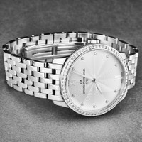 Silver-tone stainless steel case and bracelet. Fixed silver-tone bezel with diamond set stainless steel. Silver-tone dial with silver-tone hands and diamond hour markers. Dial Type: Analog. GP03300 automatic movement. Scratch resistant sapphire crystal. Pull / push crown. Transparent case back. Round case shape, case size: 36 mm, case thickness: 9.1 mm. Band width: 18 mm, band length: 7 inches. Hidden clasp. Water resistant at 30 meters / 100 feet. Functions: hour, minute, second. Additional Info: centre seconds, date, hours and minutes. 1966 Series. Luxury watch style. Watch label: Swiss Made. Girard Perregaux 1966 Automatic Diamond Silver Dial Ladies Watch 49523D11A171-11A. INFORMATION Brand: Girard Perregaux Series: 1966 Collection Name: 1966 Gender: Womens Model: 49523D11A171-11A Watch Label: Swiss Made Movement: Automatic Engine: GP03300 CASE Case Size: 36 mm Case Thickness: 9.1 mm Case Material: Stainless Steel Case Shape: Round Case Back: Transparent BAND Band Material: Stainless Steel Band Type: Bracelet Band Color: Silver-tone Band Length: 7 inches Band Width: 18 mm Clasp: Hidden DIAL Dial Color: Silver-tone Type: Analog Crystal: Scratch Resistant Sapphire Hands: Silver-tone Dial Markers: Diamond Bezel: Fixed Bezel Color: Silver-tone Bezel Material: Diamond Set Stainless Steel Crown: Pull / Push FEATURES Water Resistance: 30 meters / 100 feet Functions: Hour, Minute, Second Watch Features: Diamond, Stainless Steel, Analog ADDITIONAL INFO Watch Style: Luxury Warranty: 2 Year Jomashop Warranty Additional Info: centre seconds, date, hours and minutes Jomashop Sku: GP49523D11A171-11A Department: Watches Category: Watches