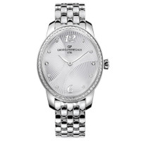 Stainless steel case with a stainless steel bracelet. Fixed- diamond set bezel. Silver dial with silver-tone hands and Arabic- diamond numeral hour markers. Dial Type: Analog. Automatic movement. Scratch resistant sapphire crystal. Skeleton transparent exhibition see through case back. Case size: 34.72 mm x 40.00 mm. Case thickness: 11.60 mm. Oval case shape. Deployment with push button clasp. Water resistant at 30 meters / 100 feet. Functions: hour, minute. Luxury watch style. Watch label: Swiss Made. Girard Perregaux Cats Eye Automatic Ladies Watch 80493D11A161-11A. INFORMATION Brand: Girard Perregaux Series: Cat'S Eye Collection Name: Cat's Eye Gender: Womens Model: 80493D11A161-11A Watch Label: Swiss Made Movement: Automatic Engine: Girard Perregaux Calibre GP03300-0120 Power Reserve: 46 hours CASE Case Size: 40.00 mm x 34.72 mm Case Thickness: 11.6 mm Case Material: Stainless Steel Case Shape: Oval Case Back: Skeleton Transparent Exhibition See Through BAND Band Material: Stainless Steel Band Type: Bracelet Band Color: Silver-tone Clasp: Deployment with Push Button Release DIAL Dial Color: Silver Type: Analog Crystal: Scratch Resistant Sapphire Hands: Silver-tone Dial Markers: Arabic- Diamond Numeral Bezel: Fixed Bezel Material: Diamond Set FEATURES Water Resistance: 30 meters / 100 feet Functions: Hour, Minute Watch Features: Diamond, Stainless Steel, Analog ADDITIONAL INFO Watch Style: Luxury Warranty: 2 Year Jomashop Warranty Jomashop Sku: GP80493D11A161-11A Department: Watches Category: Watches