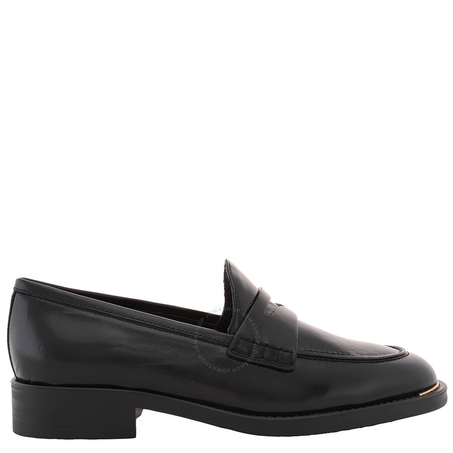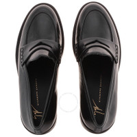 Giuseppe Zanotti Ladies Loafers. SKU: E460001-006-BLACK. Color: Black. Giuseppe Zanotti Apron Toe Penny Loafers. A pair of Apron Toe Penny Loafers featuring an almond-shaped apron toe and a slip-on design. The loafers are accented with hardware detail at the toe and a penny strap with whipstitch detailing at the instep. They feature a 0.75" stacked heel and are crafted with a leather upper, lining, and sole for a sophisticated finish. Made in Italy. Please visit the brand website for sizing information. INFORMATION Brand: Giuseppe Zanotti Model: E460001-006-BLACK Gender: Womens DETAILS Category: Loafers Shoe Style: Loafer Shoe Style: Loafer Color: Black Shoe Vamp Style: Slip-on Upper Material: Leather ADDITIONAL INFO Jomashop Sku: -E460001006BLACK Department: Shoes